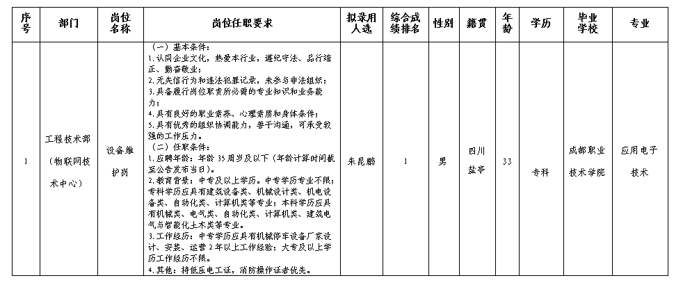 根據綿陽市城市停車管理有限公司發布的招聘公告及招聘相關規定,經筆試、面試、考察、體檢等程序,擬錄用朱昆鵬到停車公司工作,現予以公示,具體情況如下: