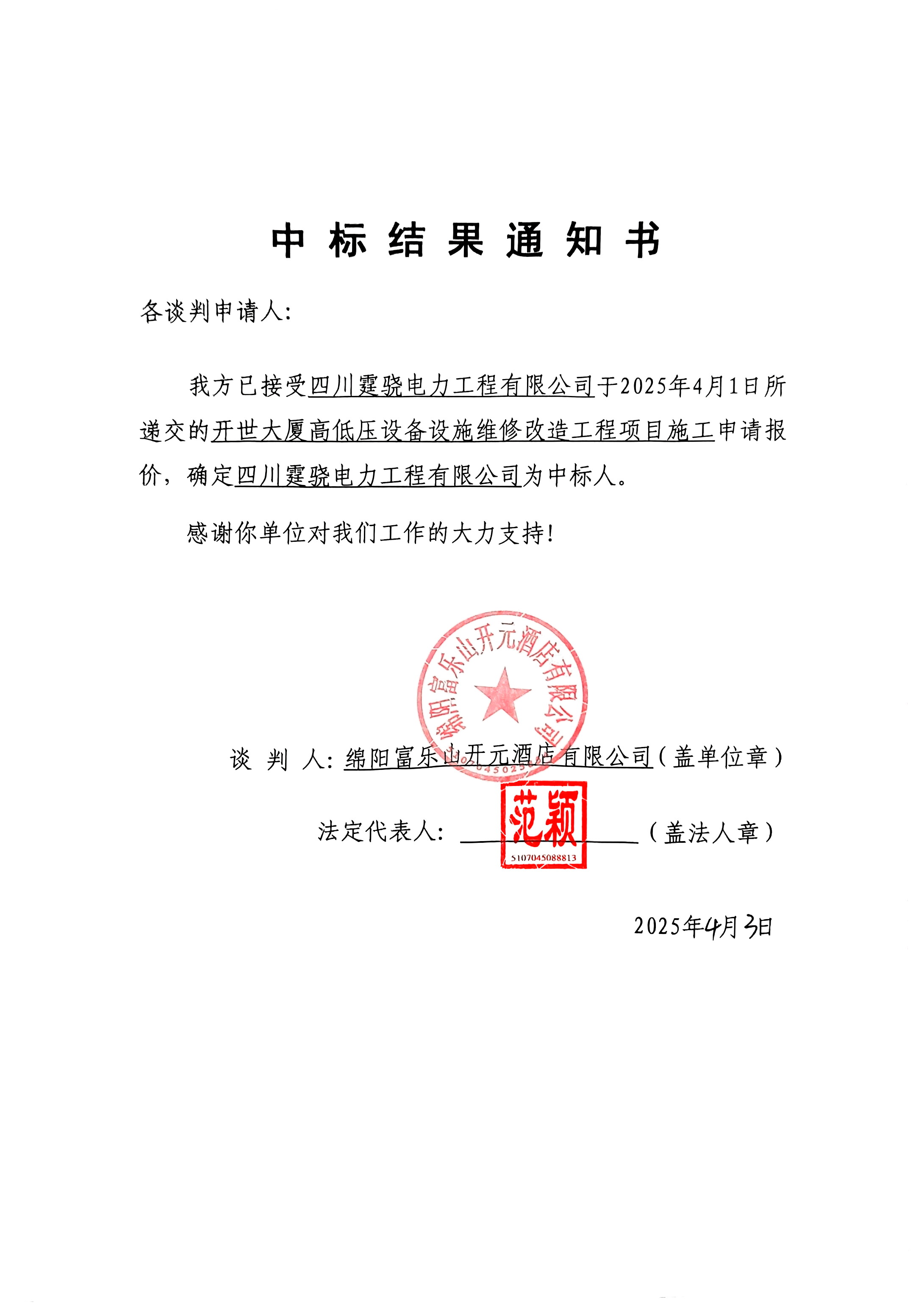 開世大廈高低壓設備設施維修改造工程項目施工競爭性談判結果公告