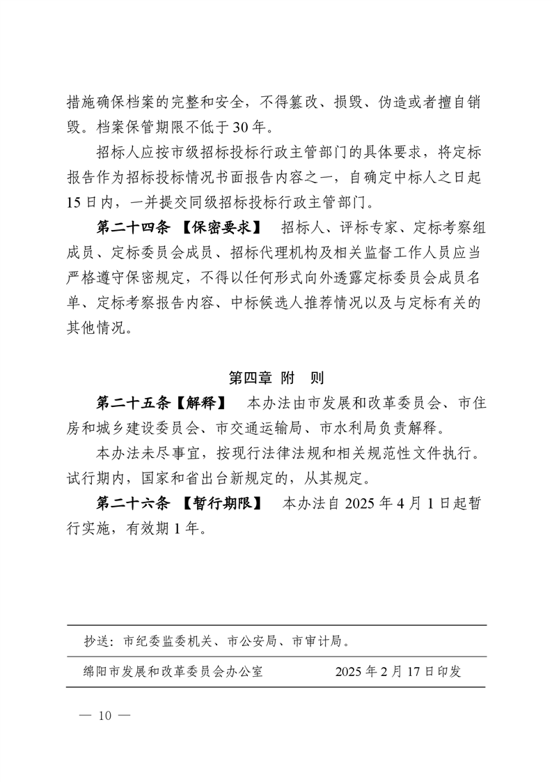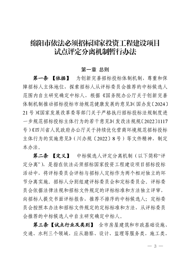 綿陽市依法必須招標國家投資工程建設項目試點評定分離機制暫行辦法(2025.2.28發布)